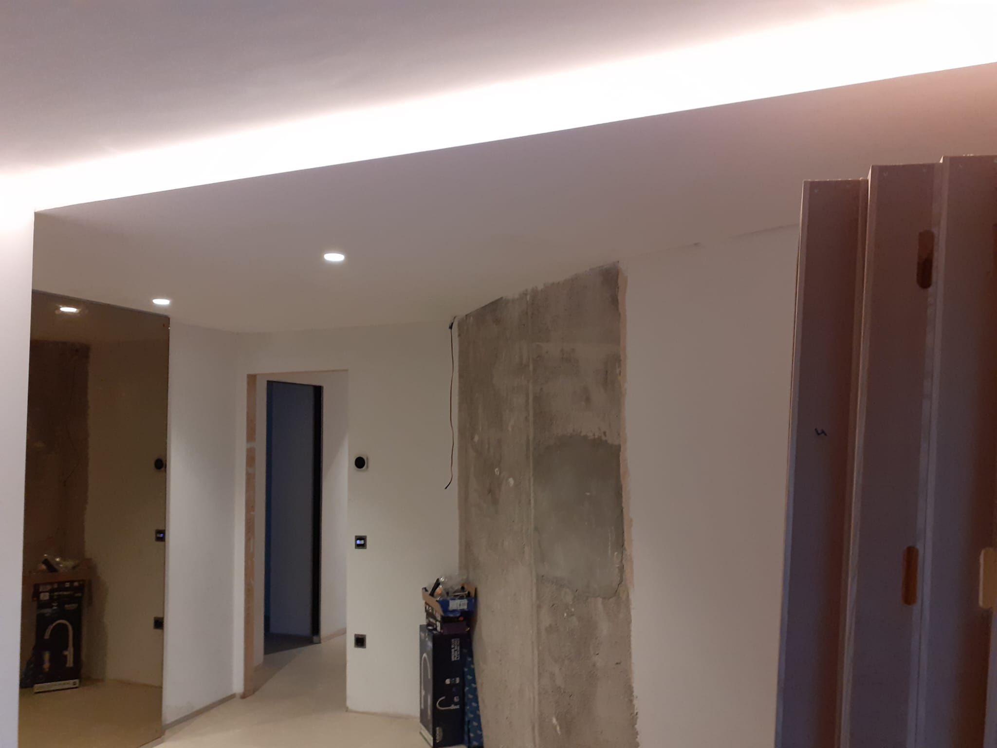 -Instalación de focos pintables integrados en techo
